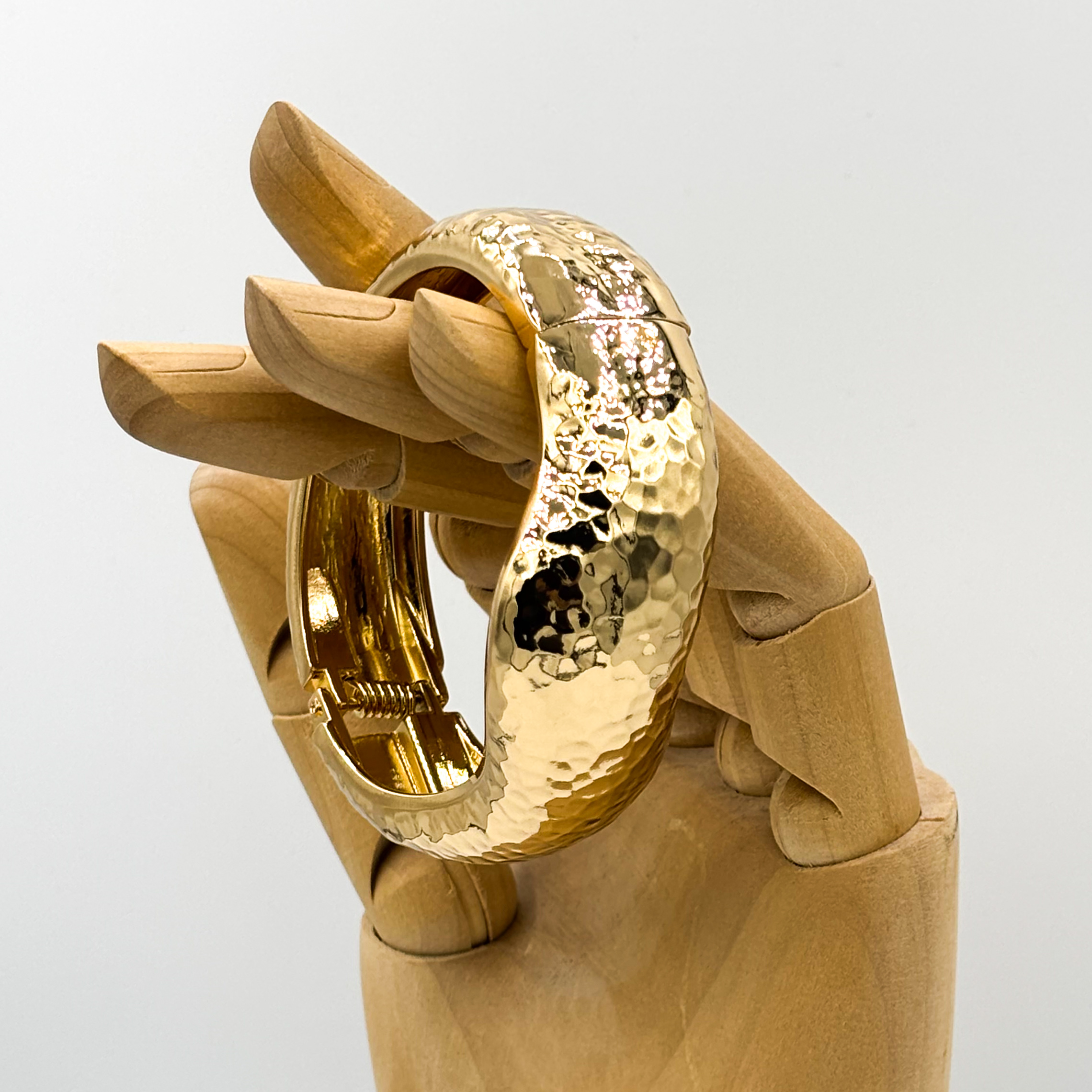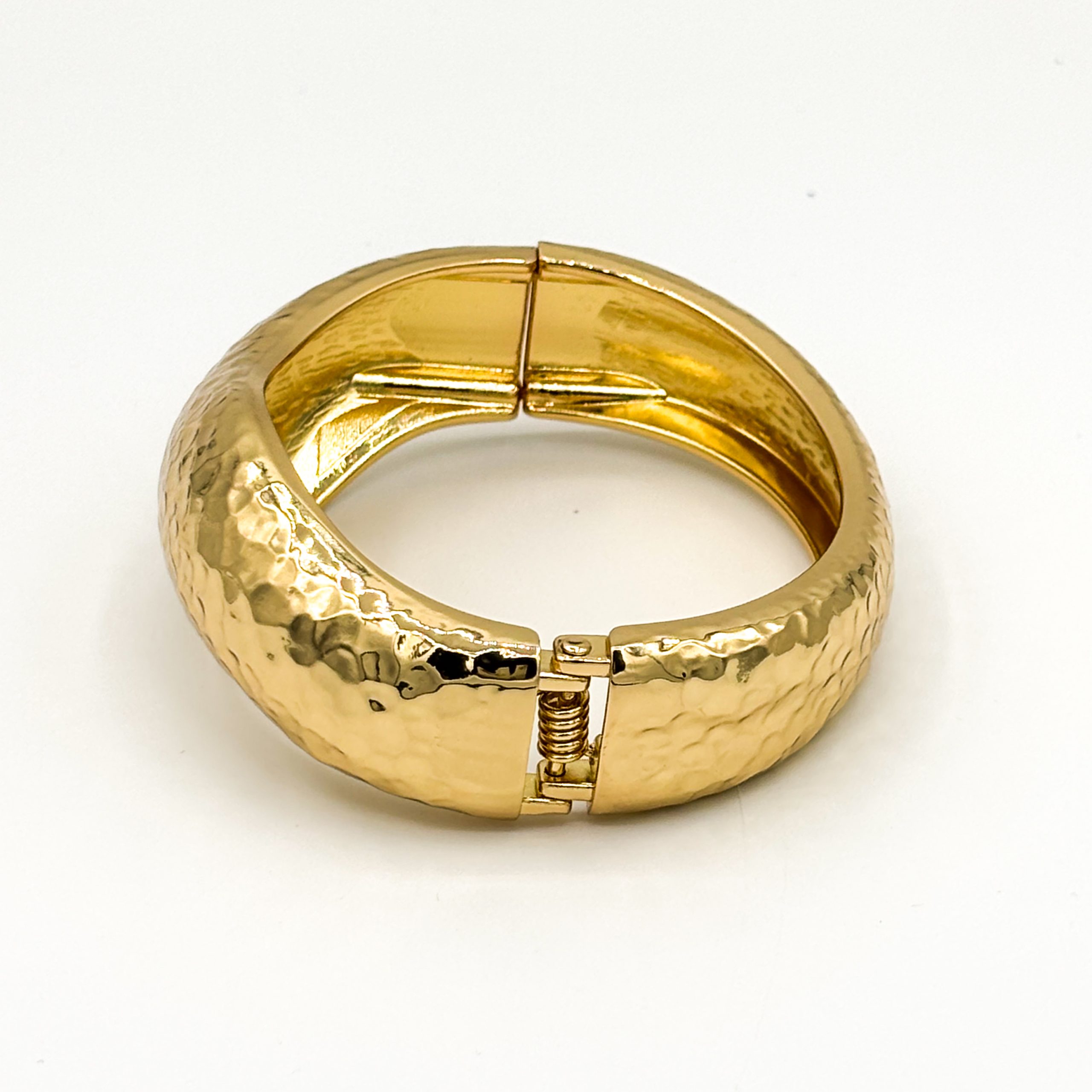 Subtiel, elegant en vol karakter — deze smalle bangle armband is het perfecte accessoire voor elke gelegenheid. Het verfijnde, gebutste en golvende design zorgt voor een speelse lichtreflectie, waardoor de armband bij elke beweging tot leven komt. De goudtint geeft je outfit direct een stijlvolle, natuurlijke uitstraling.