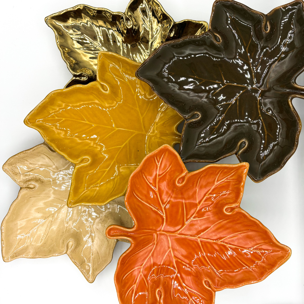 Dit bladvormig bordje brengt direct warmte en sfeer in huis. De organische vorm van het esdoornblad en de rijke kleurschakeringen in goud, okergeel, olive en warm oranje zorgen voor een natuurlijke, herfstachtige uitstraling. Elk bordje voelt als een klein kunstwerk, geïnspireerd door de rust en schoonheid van de natuur.