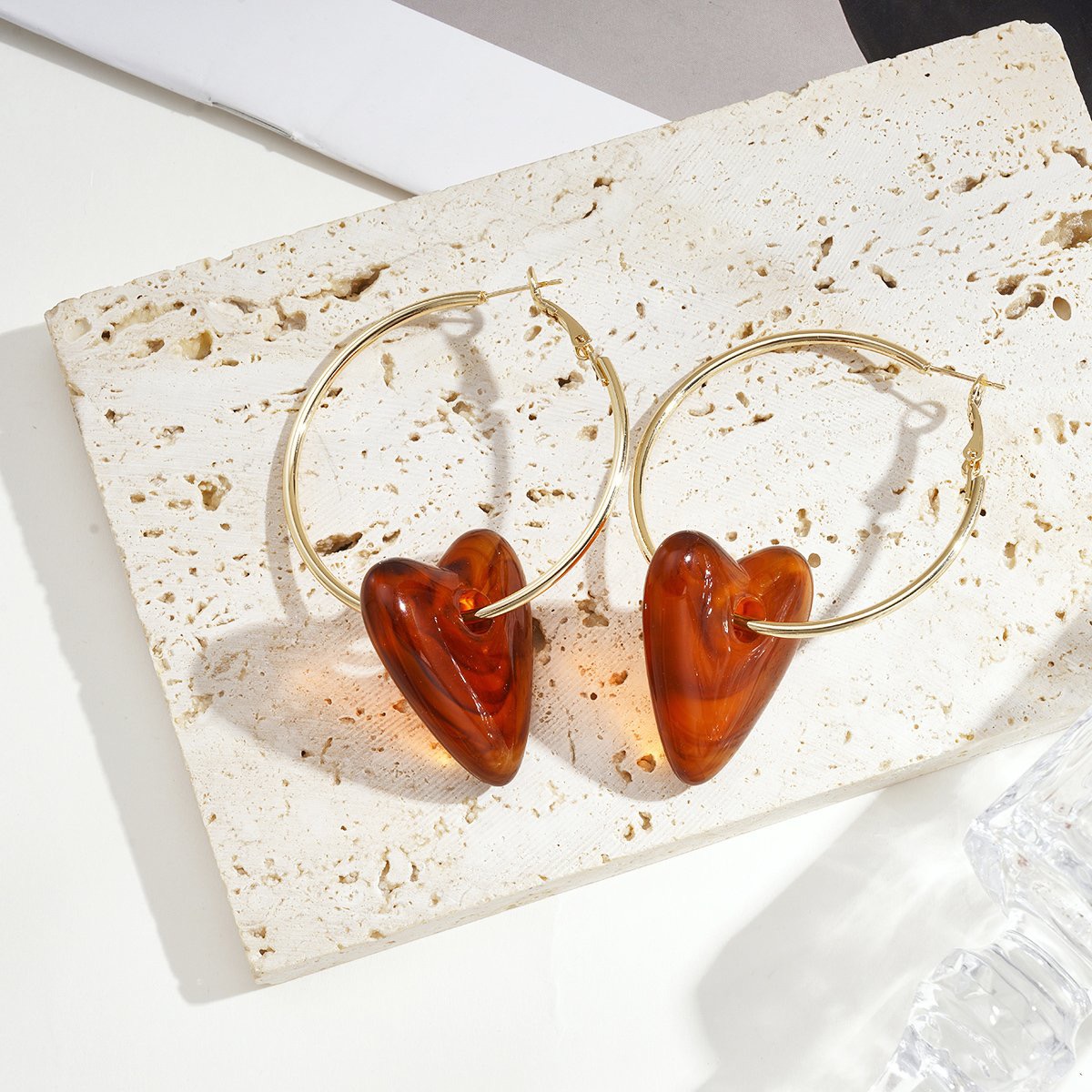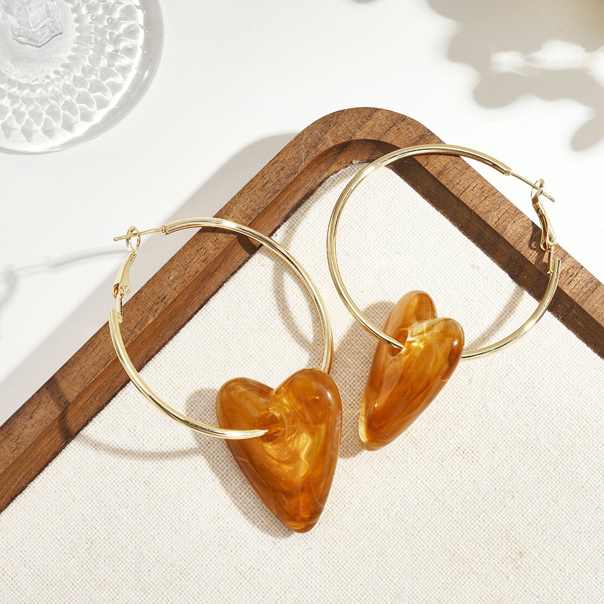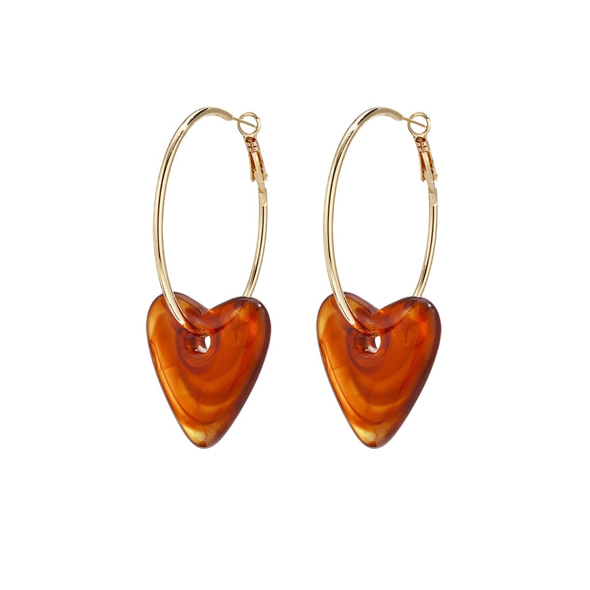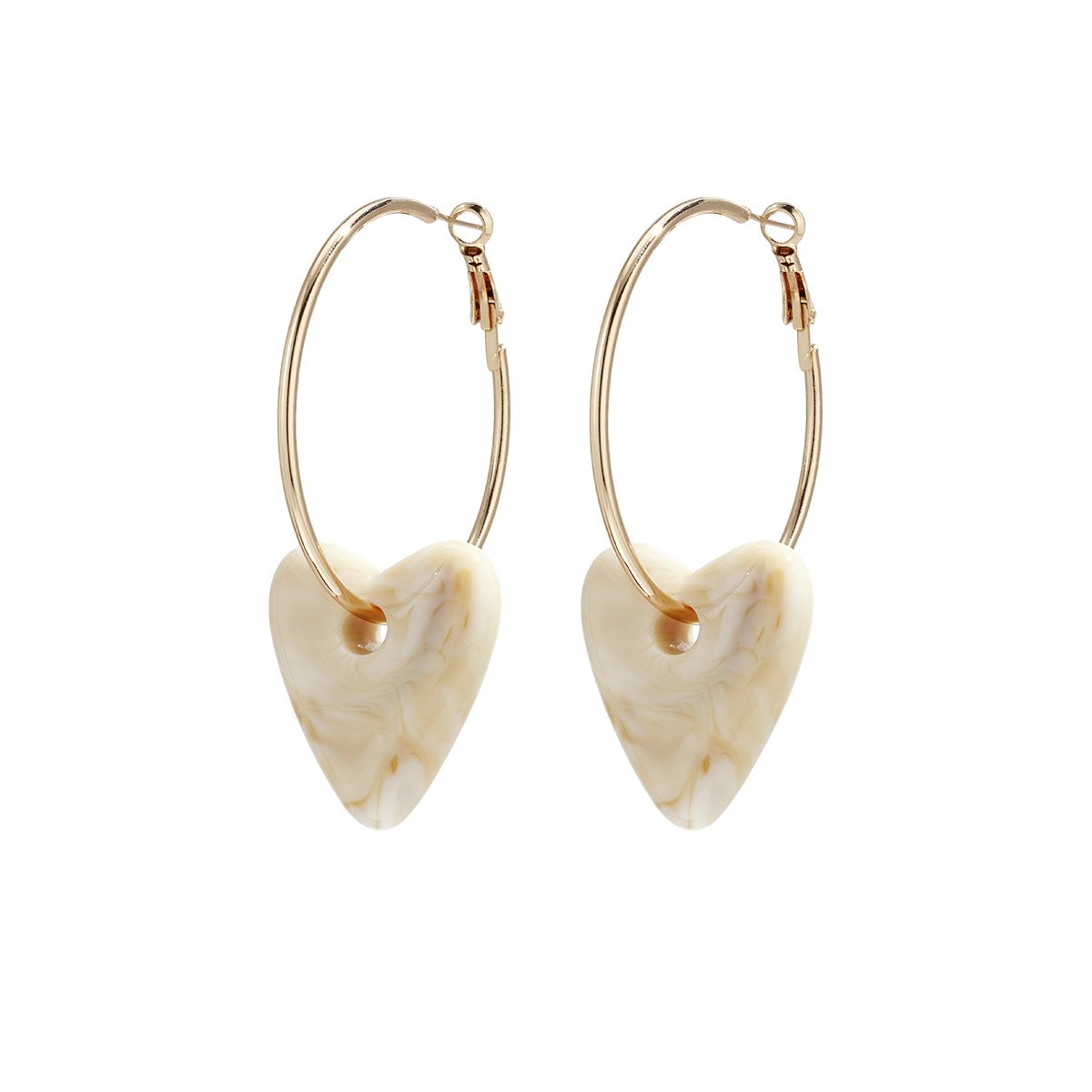 Elegante creool oorbellen met hart – roomwit, bruin & caramel
